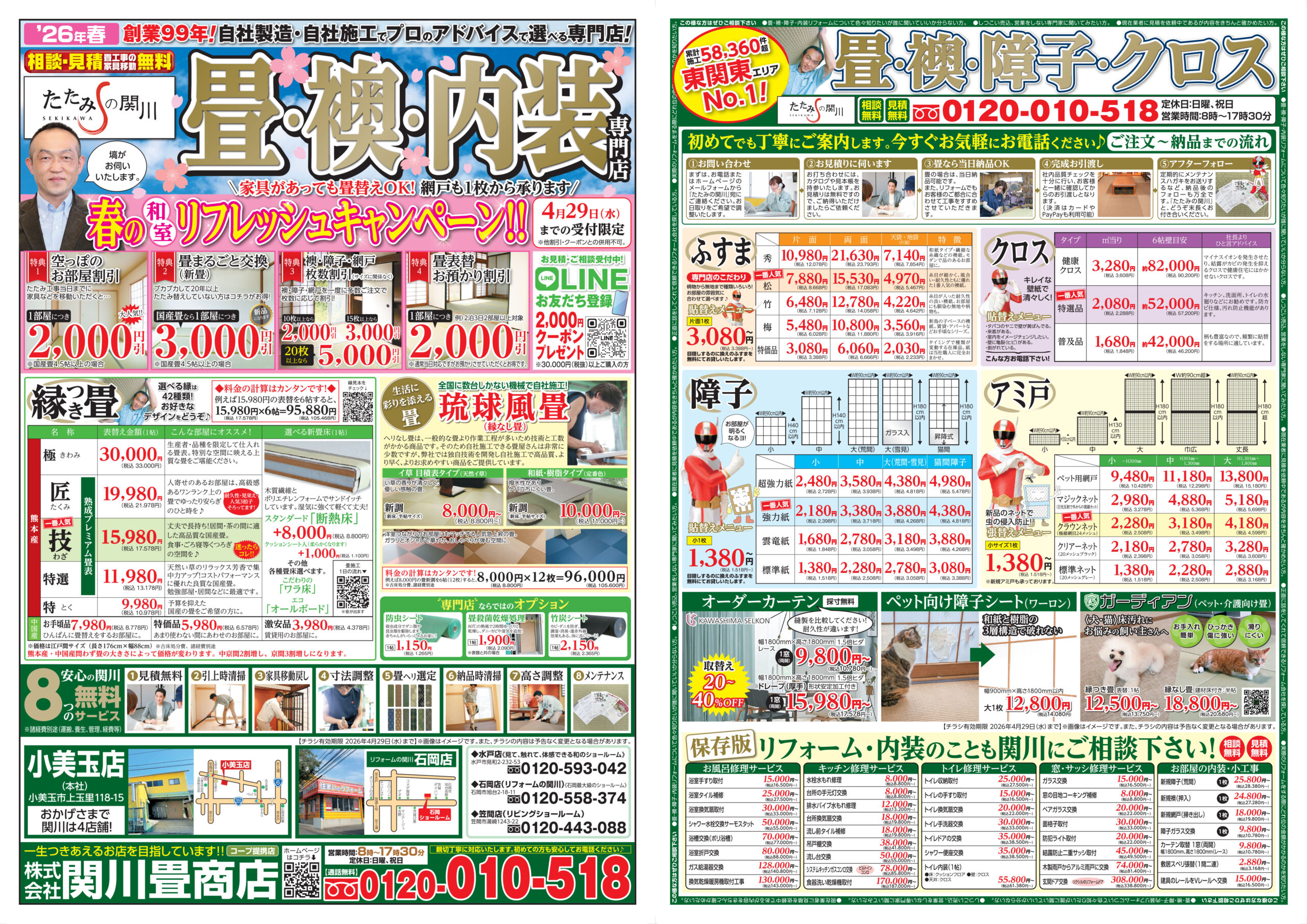 たたみの関川公式LINEでは、キャンペーン情報のほか、見積り依頼・ご相談もスムーズにご利用いただけます。今なら新規お友だち登録で「2,000円割引クーポン」プレゼント!